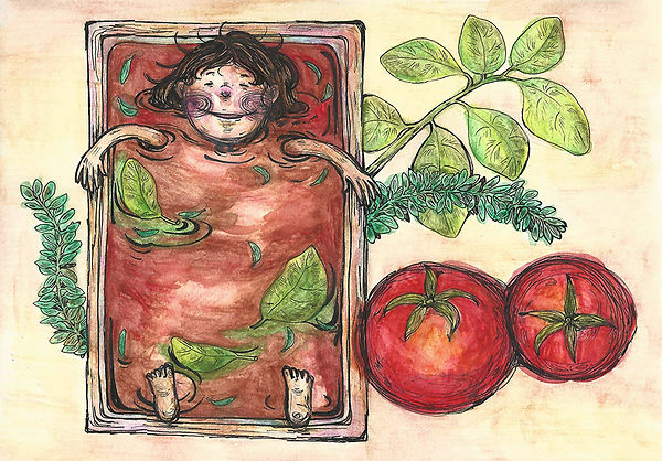 Then, marinate her with soybean sauce mixed with tomatos, sugar and some herbs until she is fully relaxed.